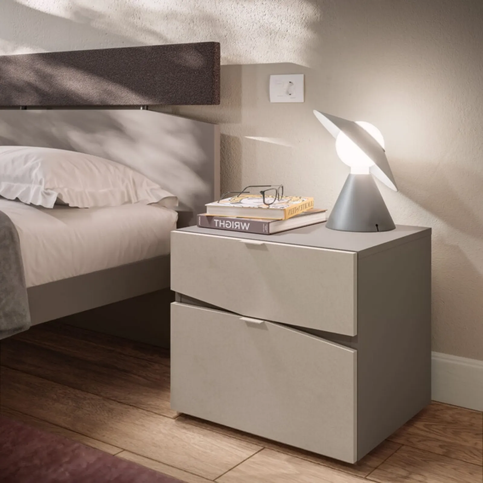 Materiali di qualità e lavorazioni eccellenti per il Comodino Slant Orme in in melaminico, disponibile da noi unitamente alle altre varie idee del marchio, per fare della zona del riposo un progetto di arredo che ricalchi la tua personalità. Ti chiedi come abbinare letti, armadi e comò? Con il modello di Orme presente in foto avrai un pezzo di arredamento appropriato per un luogo dai richiami moderni.