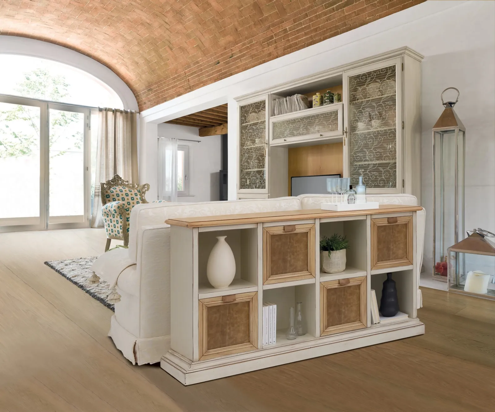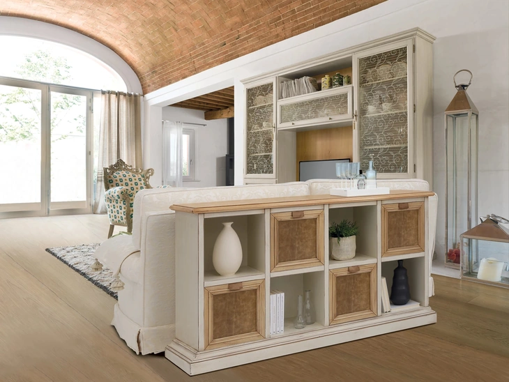 Il soggiorno è, per eccellenza, la zona della casa in cui ci dedica al relax ogni giorno, discorrendo con amici e parenti, riposando da soli o guardando la televisione. Le Librerie divisorie Tonin Casa sono disponibili in differenti forme: ad angolo, in linea, sospese e realizzabili su misura con molteplici elementi, mensole e vani. Le Librerie classiche sono sempre molto apprezzate per predisporre la zona giorno e i muri, unendo al meglio doti di praticità e design. Contattaci per info e preventivi sul modello mostrato in foto: se desideri ultimare stanze classiche, allora questa libreria dalle forme decise fa per te.